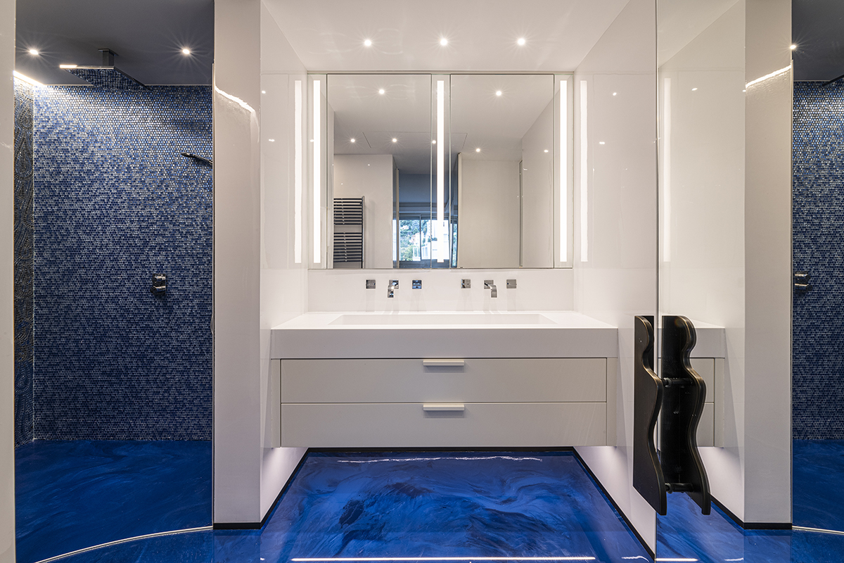 La resina, le decorazioni Sicis e gli arredi dalle forme curve che seguono l’armonia delle divisioni interne degli ambienti, fanno parte dell’accurata ricerca dell’unicità e dell’esclusività che il nostro team di lavoro mette in opera con soluzioni studiate, disegnate e realizzate per un riscontro di grande soddisfazione da parte del Cliente, per noi condizione essenziale di ogni lavoro.