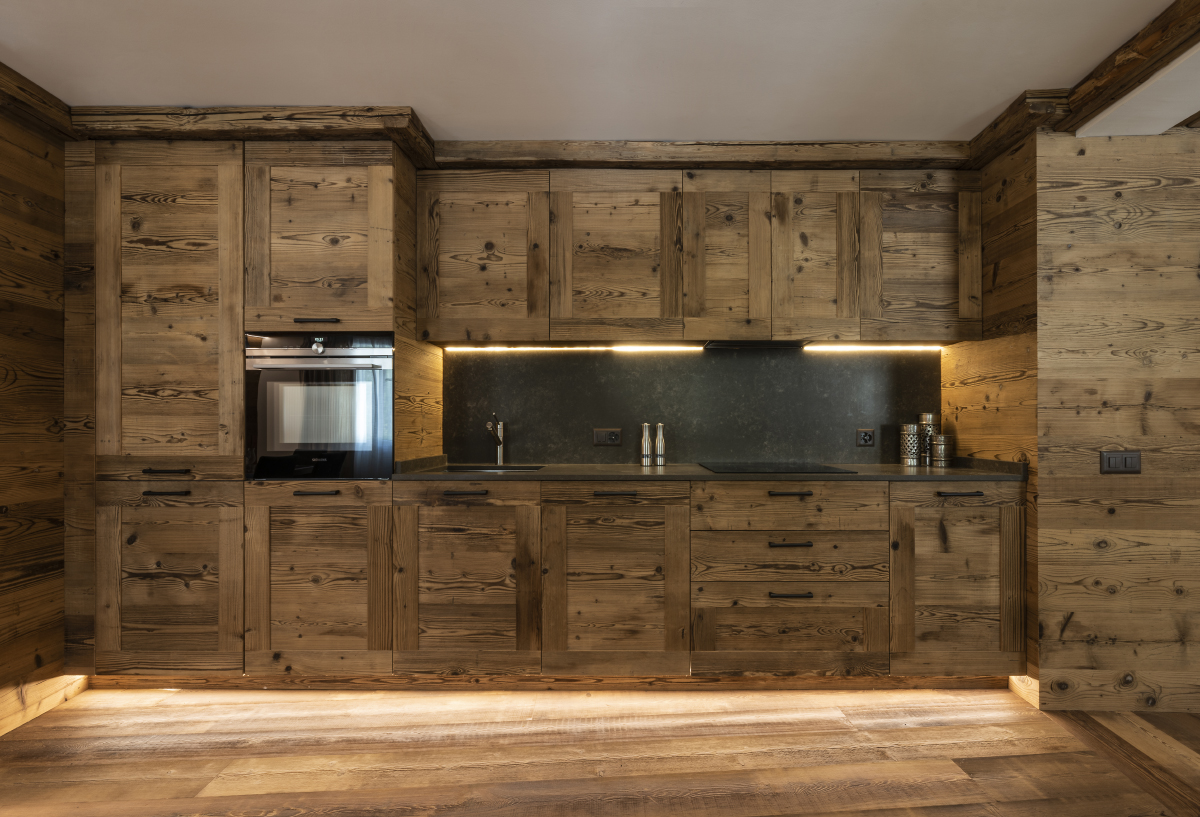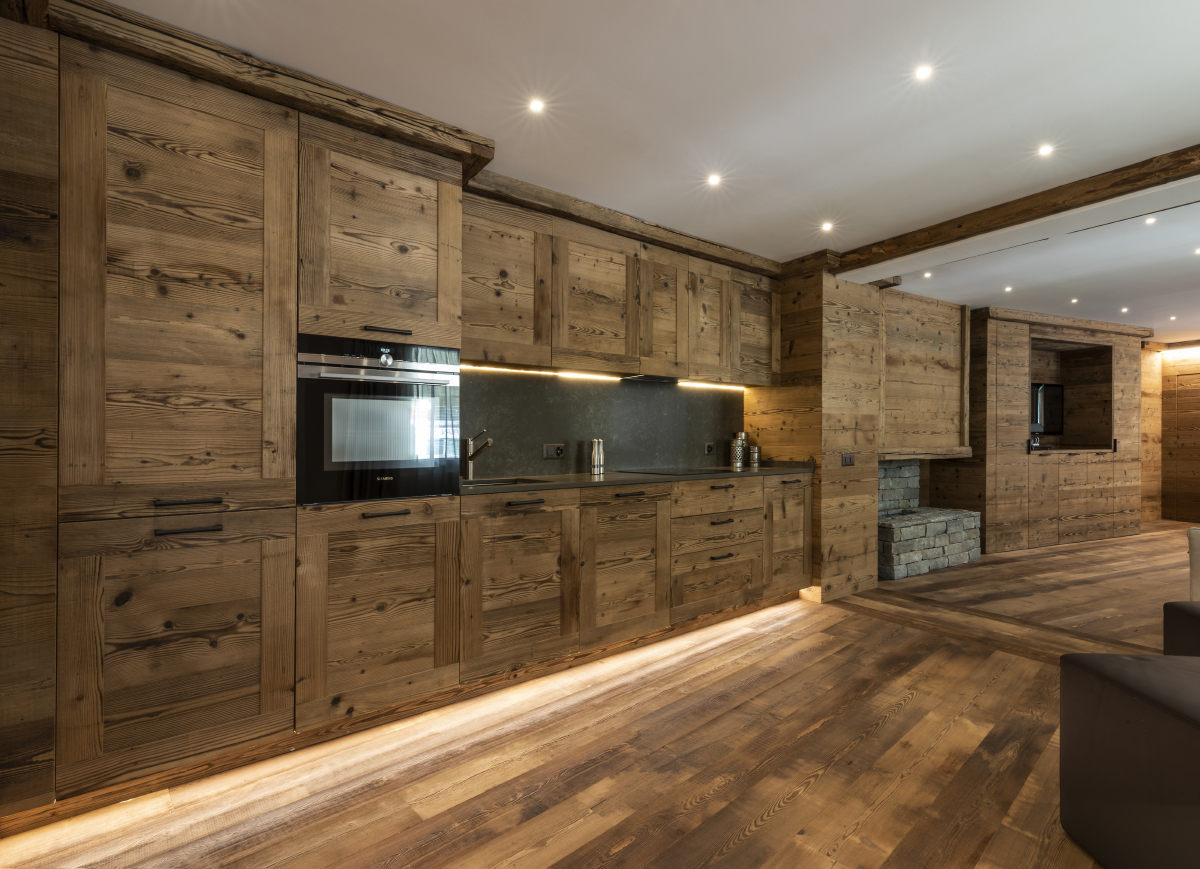 L’utilizzo di legno invecchiato e i rivestimenti delle pareti con le porte integrate, con la personalizzazione degli arredi e dei complementi d’arredo disegnati su misura, hanno definito lo stile del lavoro di Linea Design Milano.